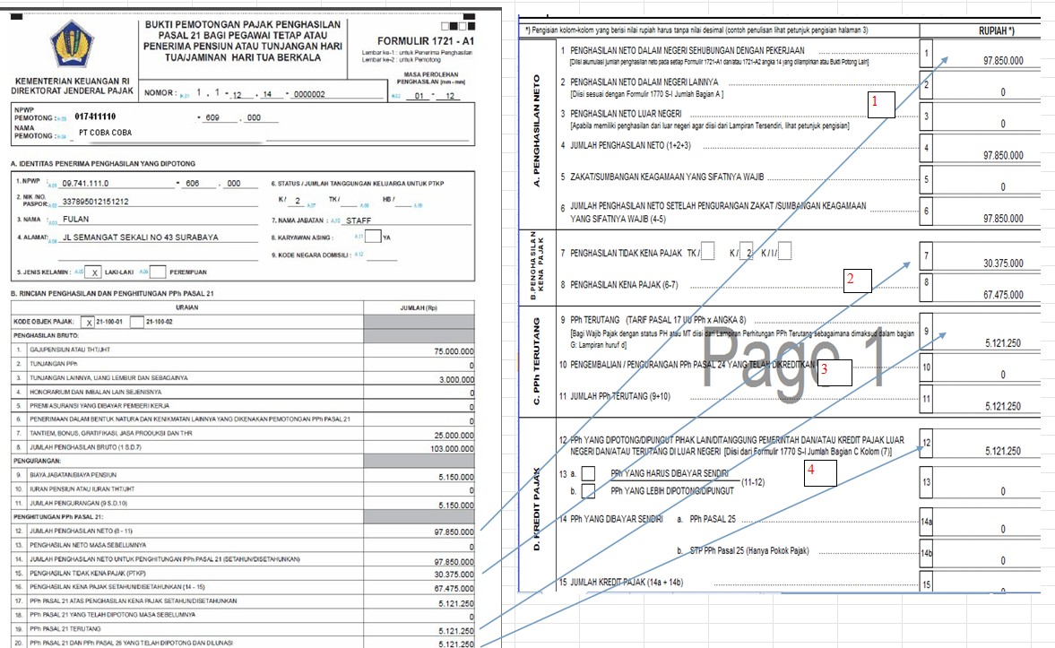 Untuk diketahui, PPh Pasal 21 yang dipotong perusahaan akan menjadi kredit pajak (pengurang pajak terutang) bagi karyawan yang melaporkan pajaknya dengan menggunakan SPT Tahunan Perorangan (Formulir 1770SS, 1770S dan 1770). Hubungan antara PPh Pasal 21 yang dipotong perusahaan/instansi dengan PPh Perorangan (PPh Pasal 29) dapat disimak pada ilustrasi pelaporan masing-masing SPT sebagai berikut: