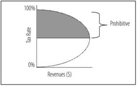 Seperti terlihat digambar, bahwa jika pemerintah mengenakan tarif pajak 0% penerimaan pajak akan sama dengan tarif 100%, yaitu nihil, karena tidak ada orang yang bersedia bekerja jika take home pay-nya jadi nihil karena terkena pajak semua. Alasannya adalah bahwa tarif pajak memiliki dua efek pada pendapatan yaitu aritmatika/matematis dan efek ekonomi. Efek matematis , yang berarti bahwa jika tarif diturunkan, penerimaan pajak per dolar dari basis pajak akan turun, dan sebaliknya jika tarif pajak dinaikkan maka penerimaan pajak akan naik. Akan tetapi Efek ekonomi menyatakan bahwa tingkat pajak yang lebih rendah akan merangsang orang untuk bekerja, menghasilkan output, dan membuka kesempatan kerja. Demikian sebaliknya, menaikkan tarif pajak akan menghukum (berdampak buruk) terhadap orang-orang yang terlibat dalam kegiatan ini. The Laffer Curve menunjukkan apa yang terjadi ketika efek ekonomi dan efek aritmatika berbenturan, menjelaskan mengapa kenaikan pajak dapat mengurangi aktivitas pajak dan meningkatkan pendapatan tetapi tidak seperti yang diperkirakan, sebaliknya pemotongan pajak dapat meningkatkan aktivitas pajak dan meningkatkan pendapatan lebih daripada yang diperkirakan. Oleh karena itu Pemerintah Daerah harus bijak dalam tahap penyusunan tarif pajak, jangan sampai karena hanya mengikuti daerah lain yang menaikkan pajak tetapi justru berdampak negatif dengan tidak tercapainya penerimaan pajak sesuai harapan. Terutama jika penentuan tarif pajak berada pada prohibitive area.