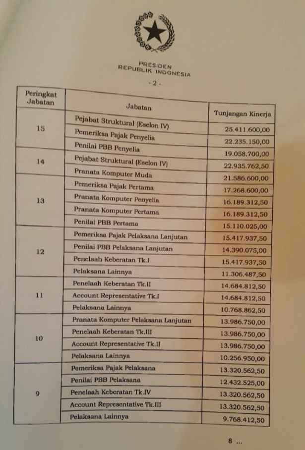 Berdasarkan dokumen yang diterima ForumPajak.org, berikut ini tabel tunjangan pegawai pajak atau ‘vitamin tambahan gaji pegawai pajak’ yang baru: