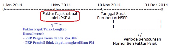 - PKP A menerima Surat Pemberian Nomor Seri Faktur Pajak tertanggal 10 November 2014 dengan Nomor Seri Faktur Pajak 004-14.00000001.