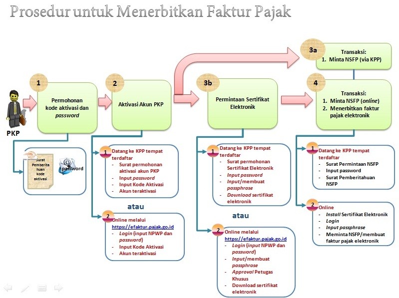 Forum Pajak – Artikel Permintaan Nomor Seri Faktur Pajak ini merupakan bagian dari rangkaian langkah bagi Pengusaha Kena Pajak yang akan menerbitkan Faktur Pajak. Artikel ini menjelaskan langkah pada angka 3a dan angka 4 pada ilustrasi berikut: