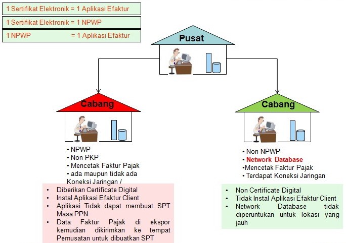 Ilustrasi penggunaan sertifikat elektronik dalam sebuah jaringan perusahaan dengan status pemusatan dan cabang adalah sebagai berikut: